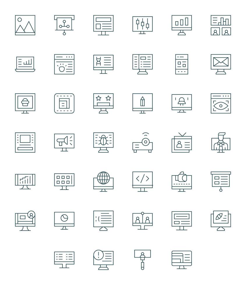 40 Thin Line Pixel Optimized 64x64 Icons from Screen Suite Free Vector