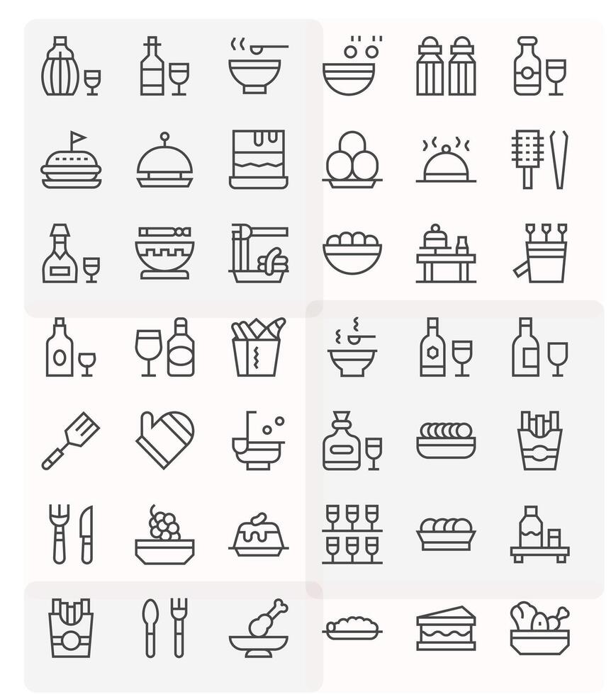 Serving Visual Pack containing 42 Regular Line Pixel Aligned Icons vector