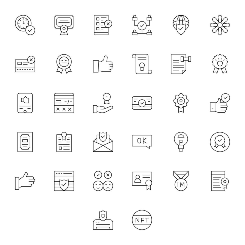 Thin Line Style Validation Icons with 32 256x256 Pixel Optimized Designs vector