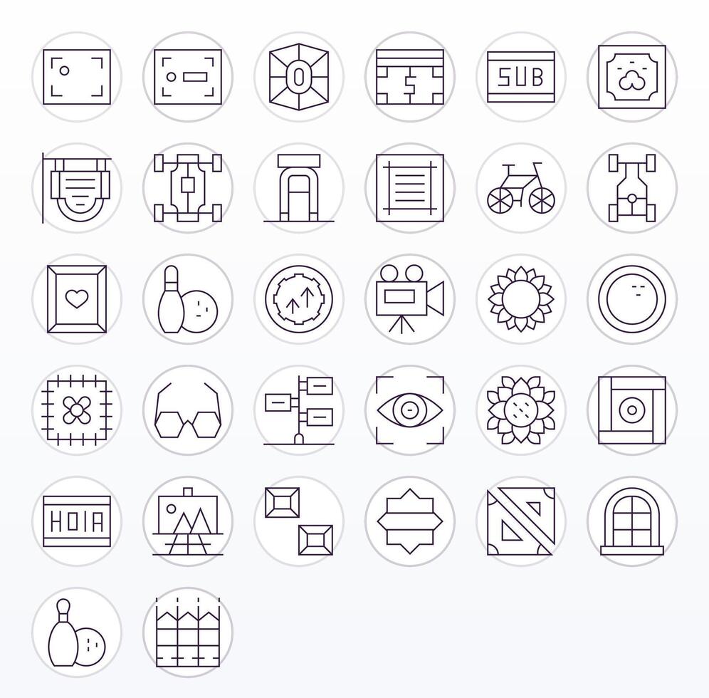 Thin Line Style Frame Icons with 32 64x64 Pixel Optimized Designs vector