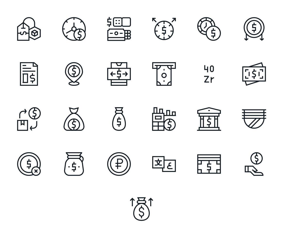 25 Regular Line Pixel Aligned Icons for Currency Graphics vector