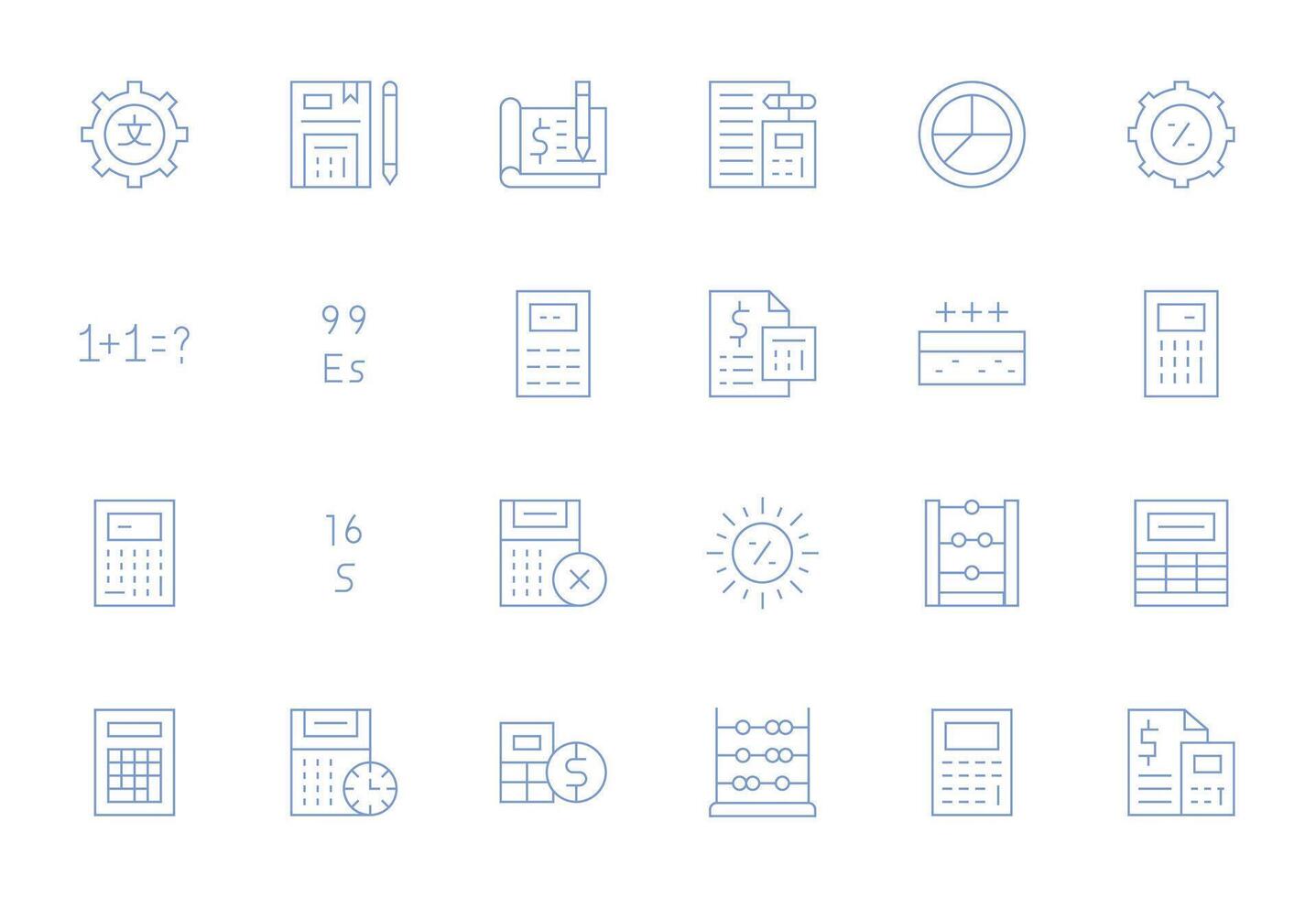 Calculation Icon Set with 24 Thin Line High Resolution Pixel Optimized Graphics vector