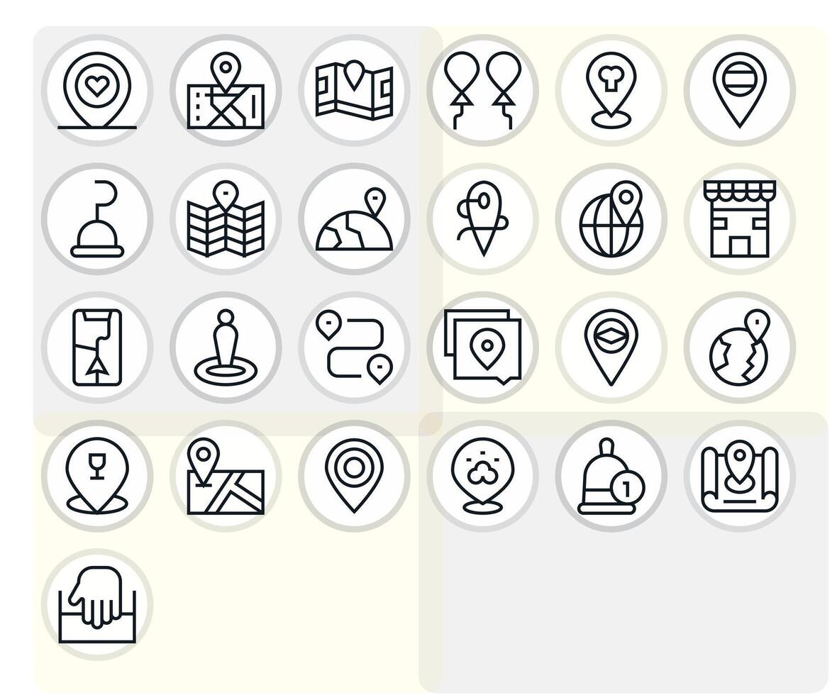 Place Comprehensive Bundle with 25 PIXEL Perfect Regular Line High Resolution Icons Free Vector