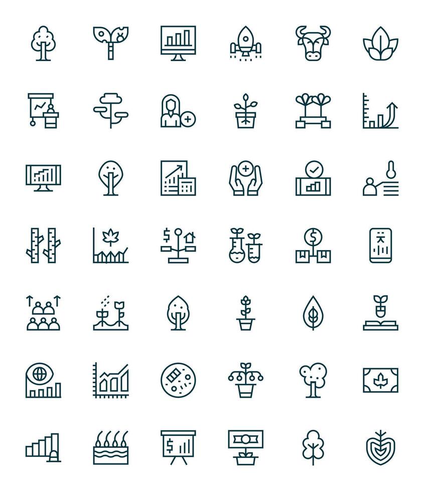Growth Design Icons featuring 42 Pixel Optimized Regular Line Style Free Vector