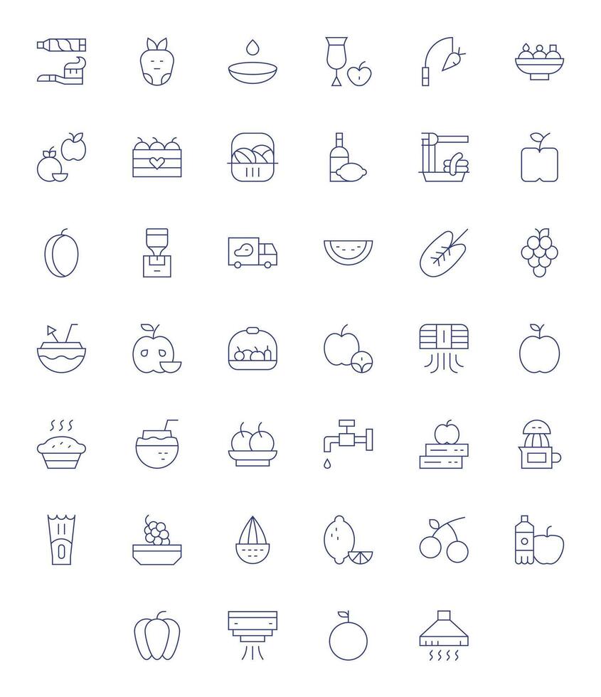 40 Icons for Fresh optimized in Pixel Optimized 256x256 Thin Line resolution Free Vector