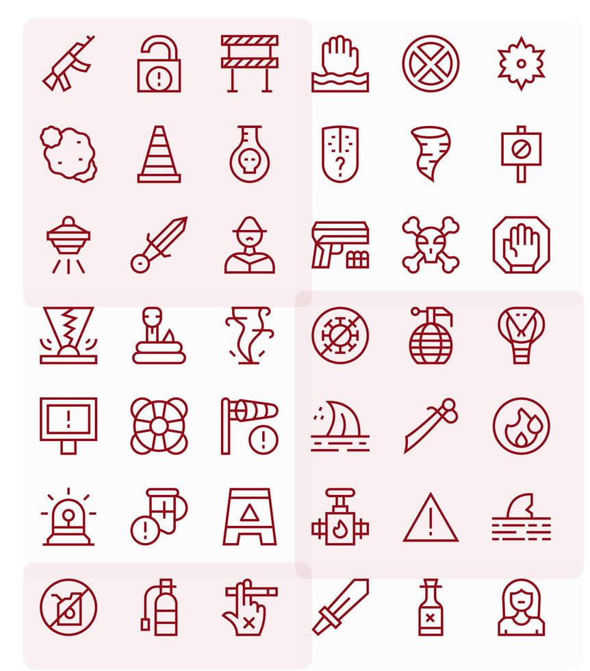 42 Regular Line Pixel Aligned 256x256 Icons from Danger Suite Free Vector