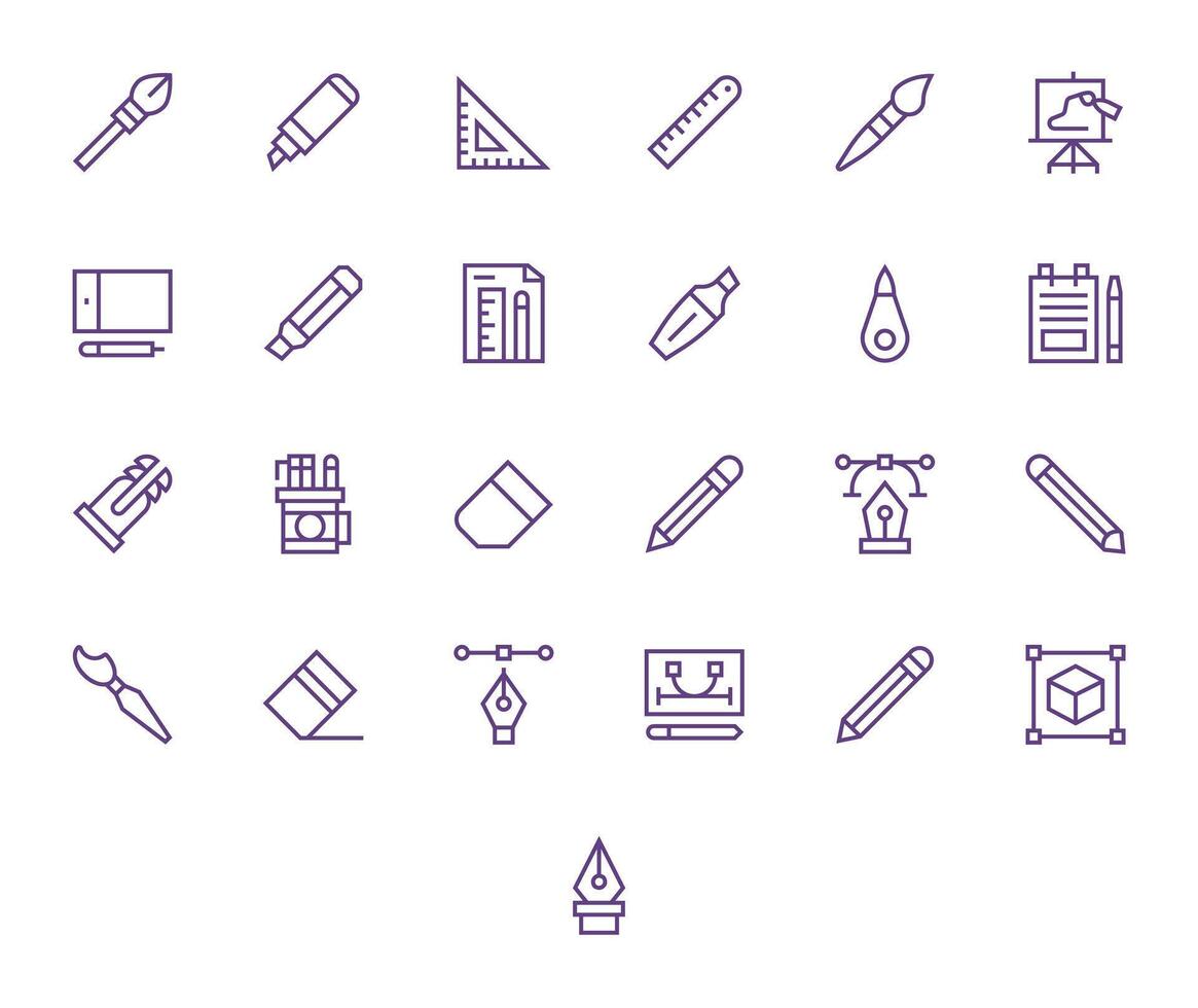 25 Regular Line Icons designed for Drawing Tool in 64x64 Display Perfect format vector