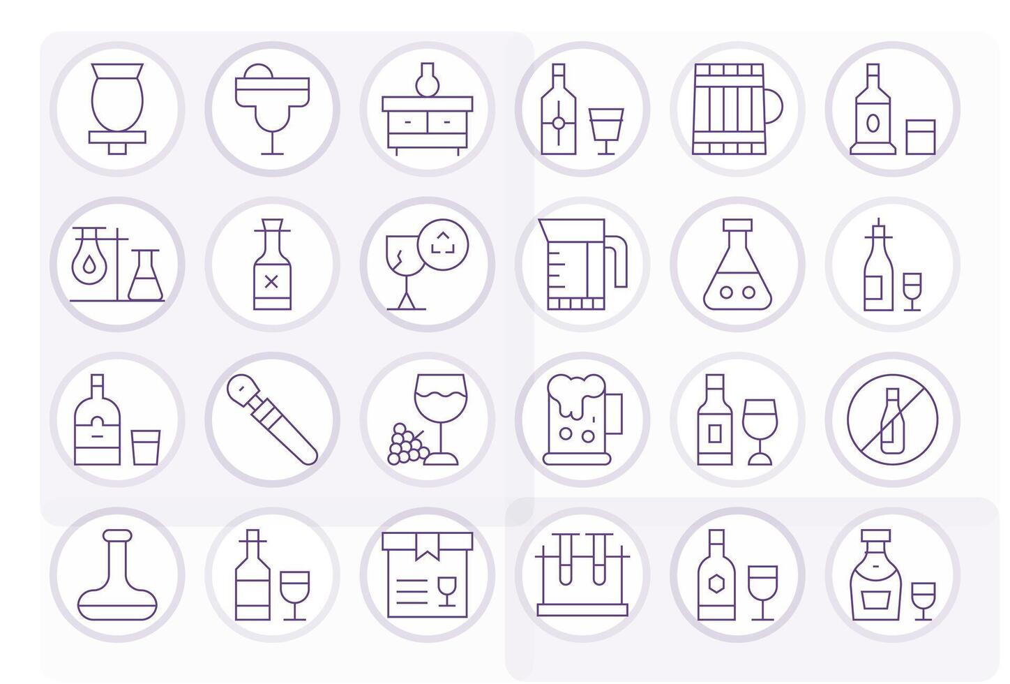 Glassware Icon Set with 24 Thin Line 64x64 Pixel Aligned Graphics vector