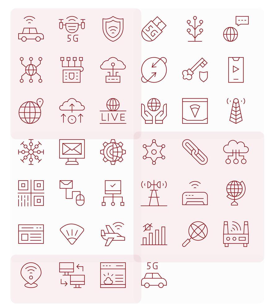 Internet Comprehensive Bundle with 40 Detail Enhanced Thin Line 256x256 Icons Free Vector