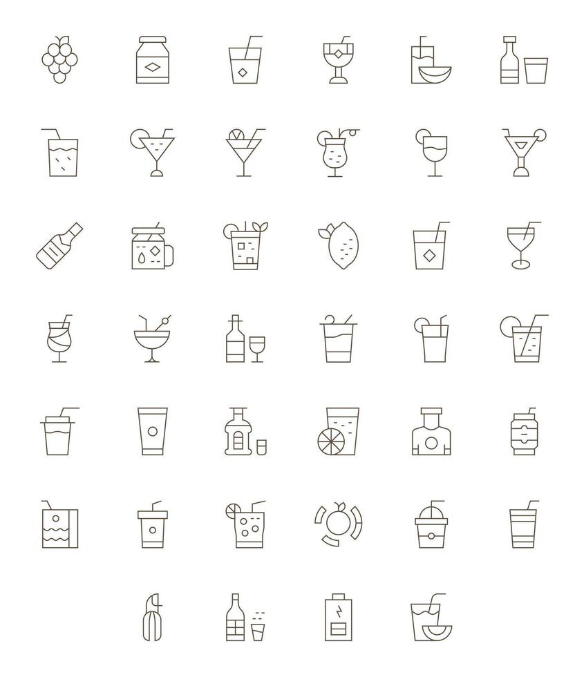 Juice Ultimate Package with 40 High Resolution Thin Line Display Perfect Icons Free Vector