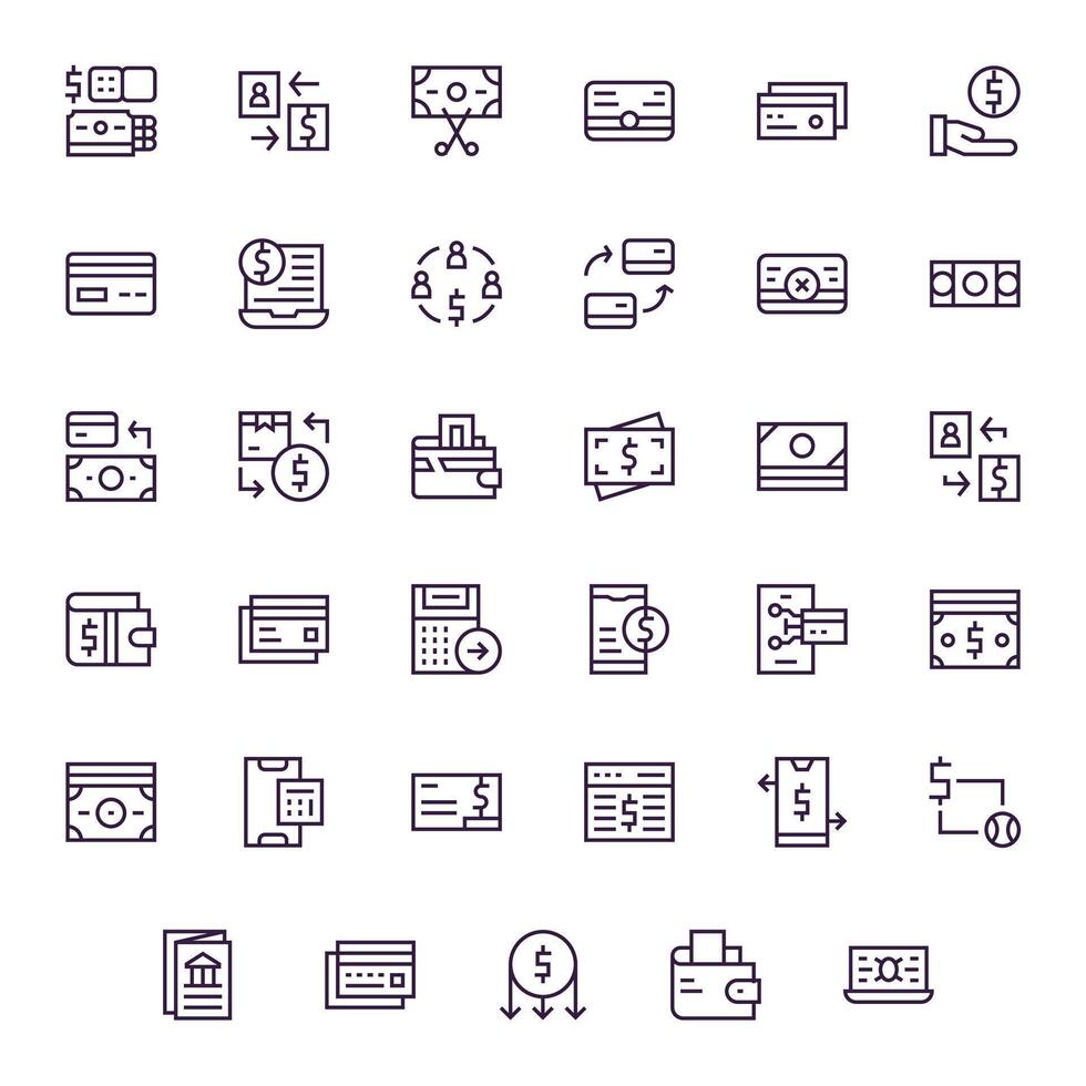 35 Pixel Optimized Icons themed around Debit in Retina Ready Regular Line format vector