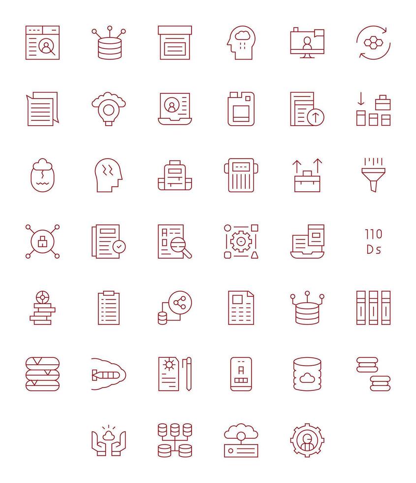 40 Pixel Optimized Icons themed around Data Management in 256x256 Thin Line format vector