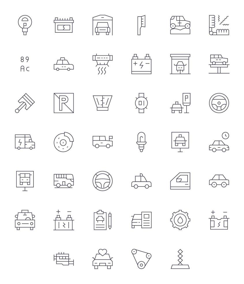 Automobile Icon Toolkit featuring 40 Detail Enhanced High Resolution Thin Line elements vector