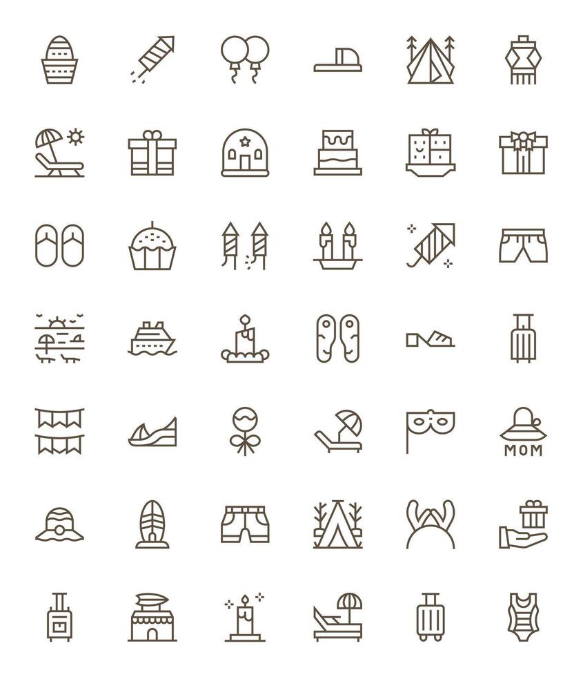 42 Icons for Holiday optimized in Pixel Aligned Retina Ready Regular Line resolution vector