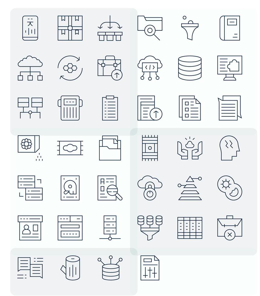 40 High Resolution Icons for Data Management with Display Perfect Thin Line clarity Free Vector