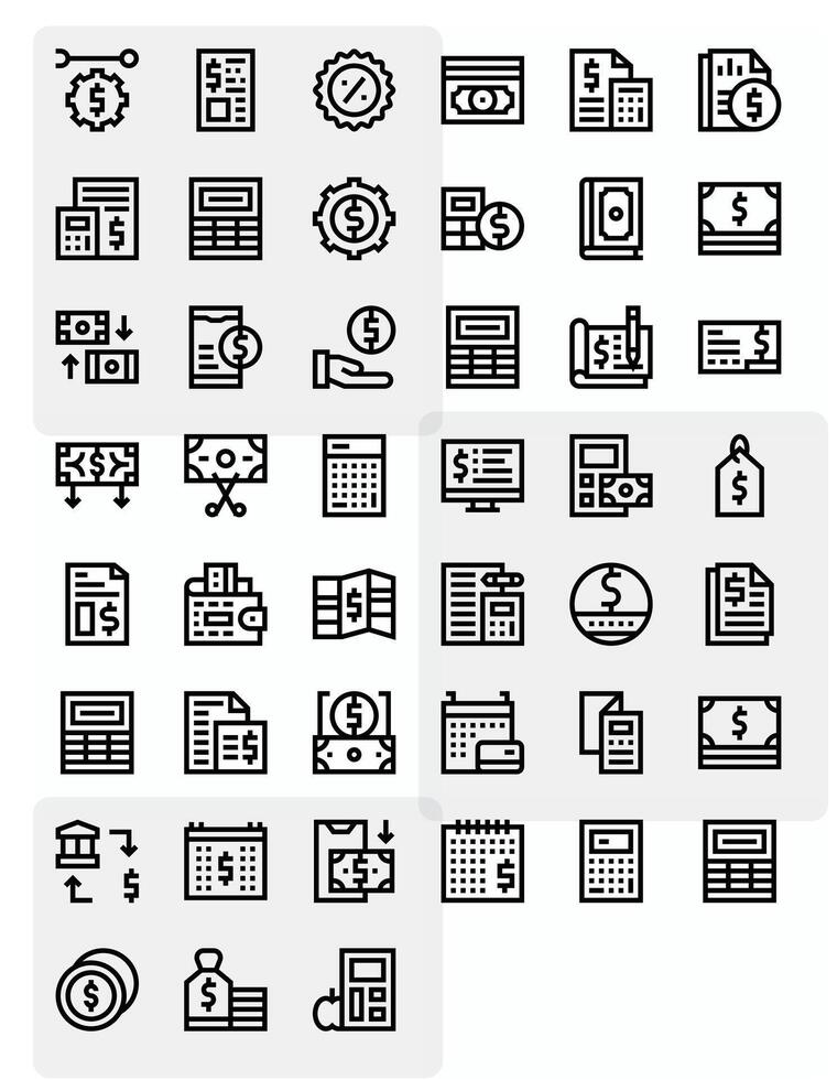 Expense Icon Toolkit featuring 45 Pixel Optimized 128x128 Bold Line elements Free Vector