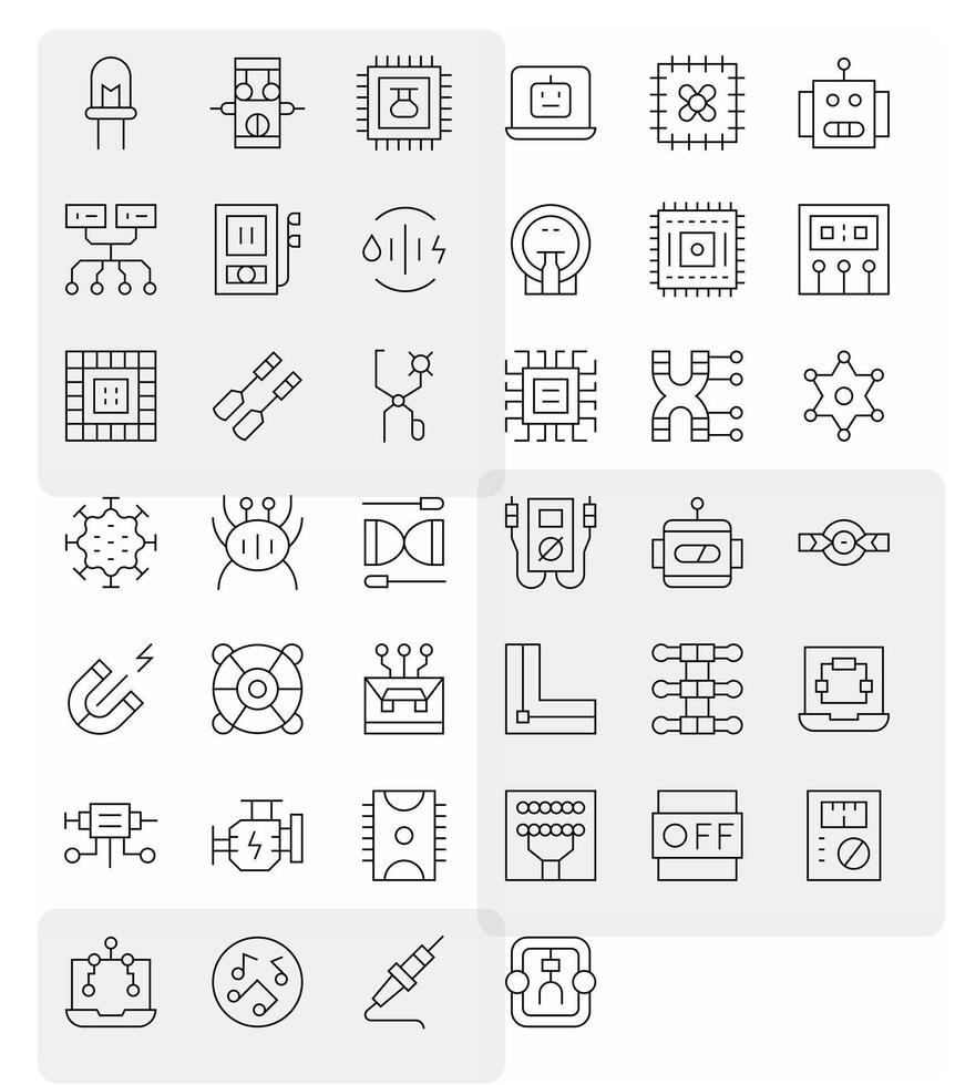 Circuit Premium Bundle with 40 High Resolution Grid Fitted Thin Line Icons Free Vector