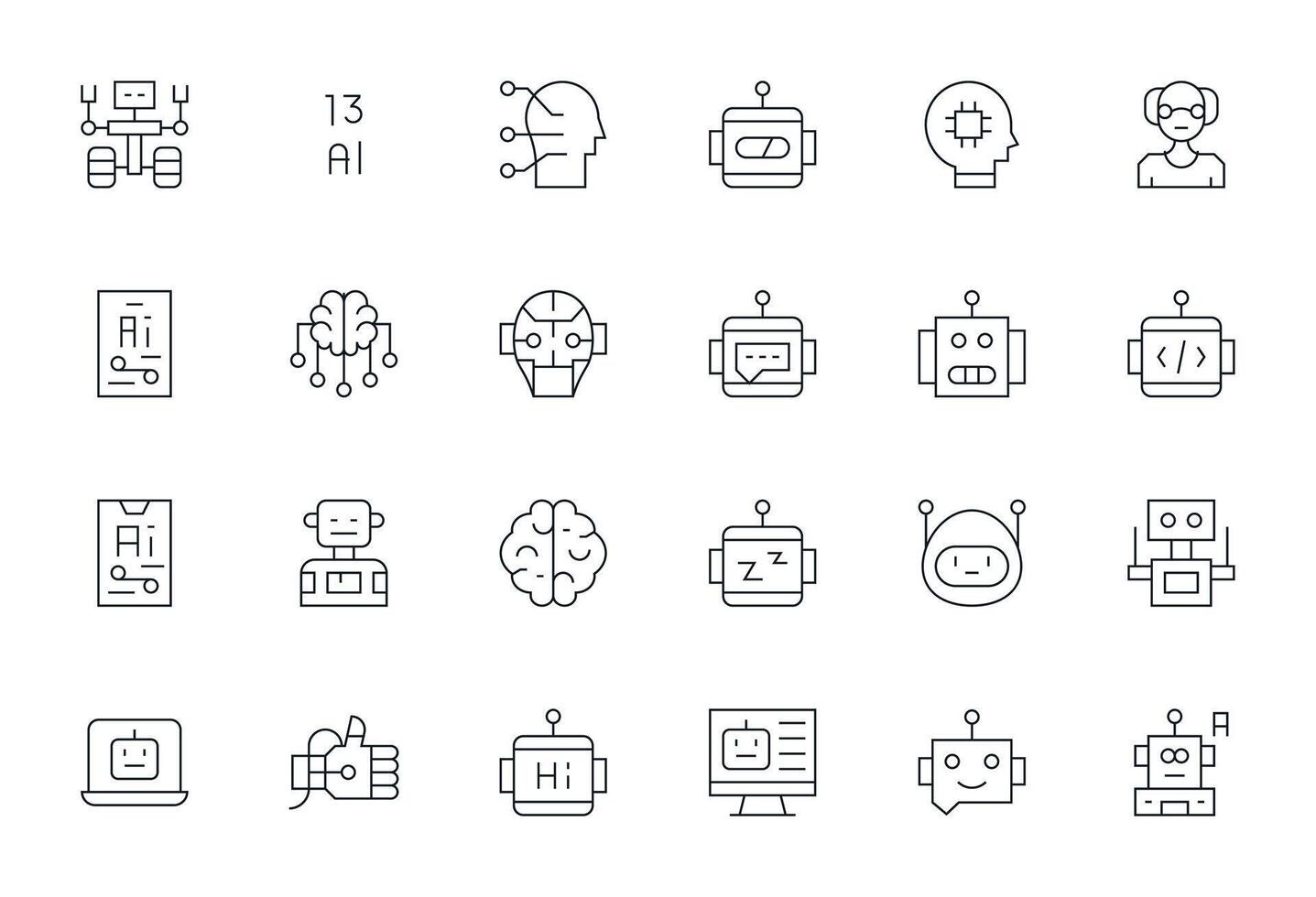 24 Thin Line Icons from Artificial Intelligence in Retina Ready Pixel Aligned Quality vector