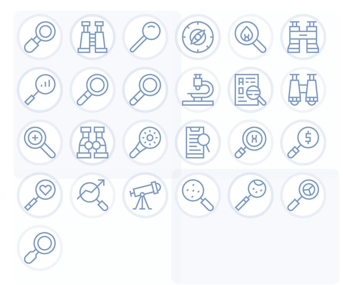 25 Grid Fitted Regular Line Icons from Magnifying Collection vector