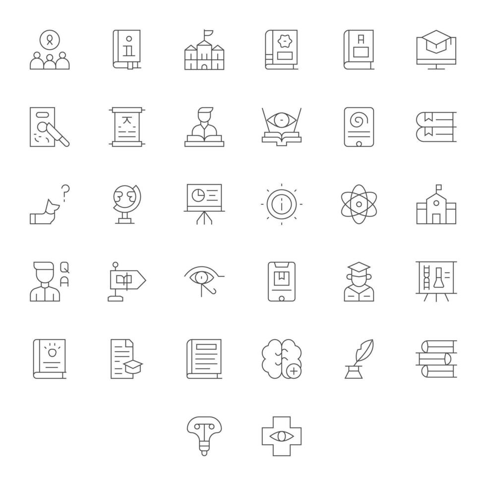 32 128x128 Thin Line Pixel Aligned Icons for Knowledge Projects vector