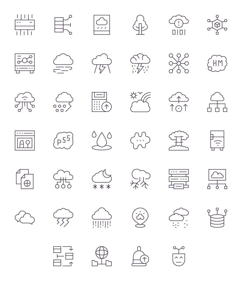 Cloud Comprehensive Bundle with 40 Pixel Aligned Thin Line 256x256 Icons Free Vector