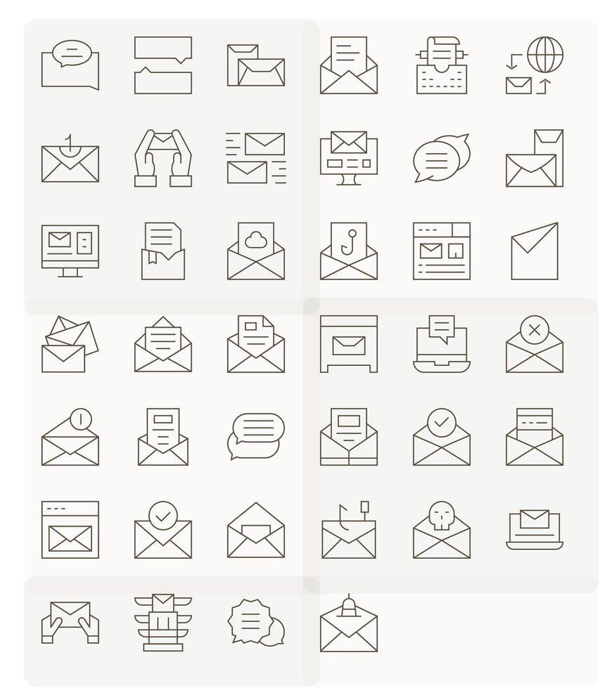 40 High Resolution Thin Line Icons optimized for Inbox Grid Fitted display Free Vector