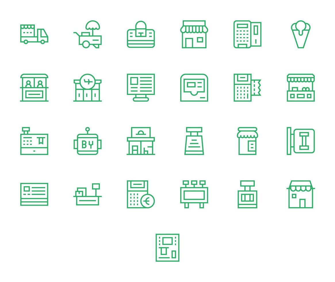 Kiosk Pixel Aligned Set with 25 High Resolution Regular Line Icons vector