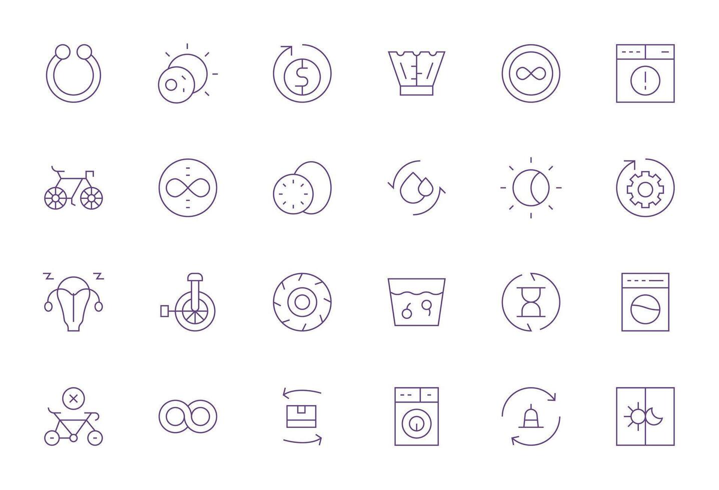24 Editable Icons themed around Cycle in 64x64 Thin Line format vector