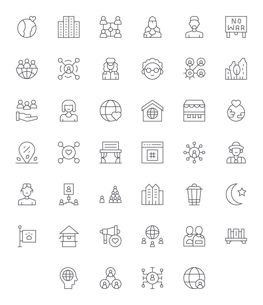 Community Exclusive Set featuring 40 Thin Line Pixel Optimized 64x64 Icons Free Vector