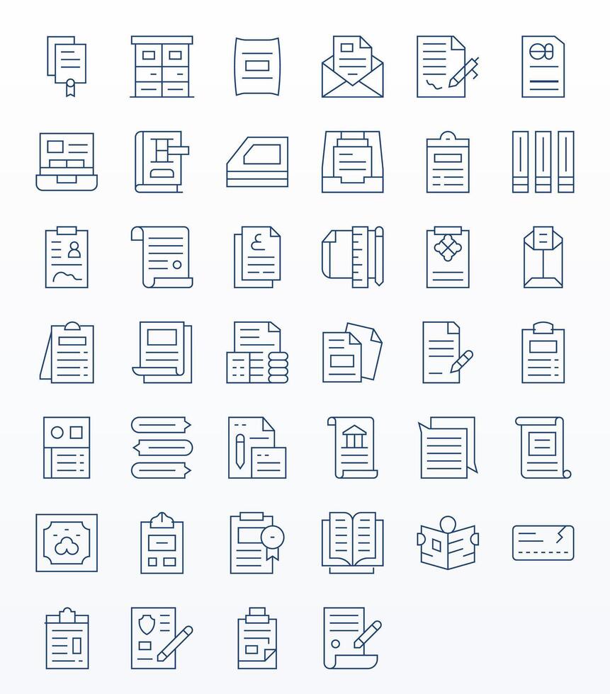 Paperwork Icon Repository containing 40 Thin Line High Resolution Grid Fitted graphics vector