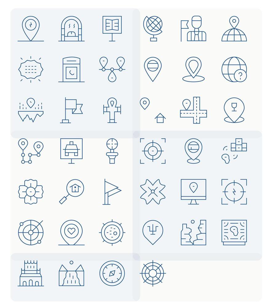 Location Icon Set with 40 Thin Line 64x64 Pixel Optimized Graphics Free Vector