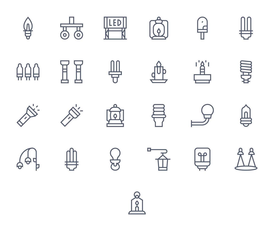 25 Retina Ready Regular Line Icons for Light Source with Pixel Aligned precision Free Vector