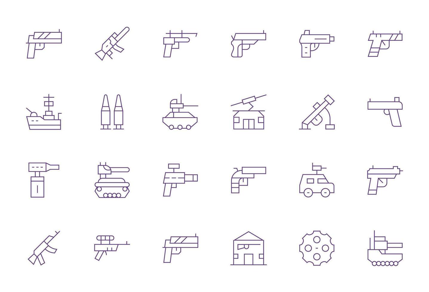 Gun Scalable Set featuring 24 Display Perfect Thin Line High Resolution Icons vector