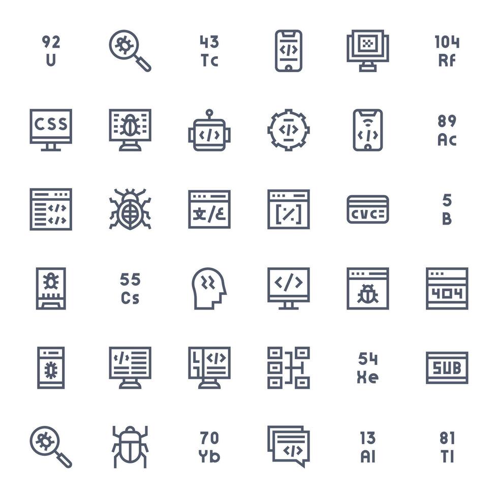 Code Icon Collection featuring 36 Pixel Optimized High Resolution Bold Line Designs vector