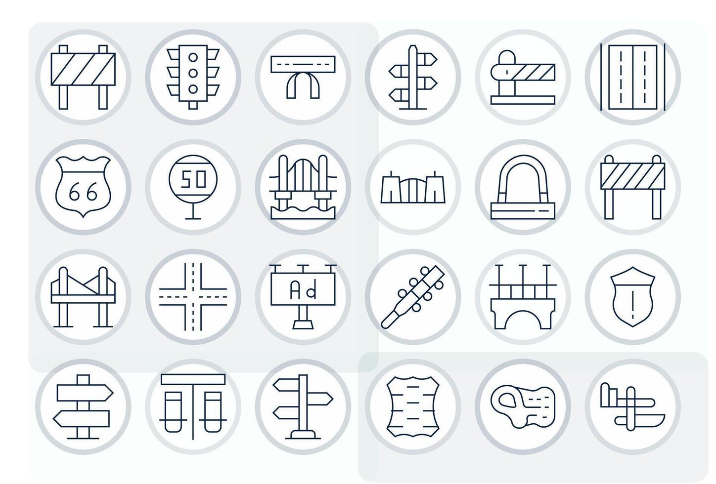Highway Comprehensive Bundle with 24 Pixel Optimized Thin Line 128x128 Icons vector