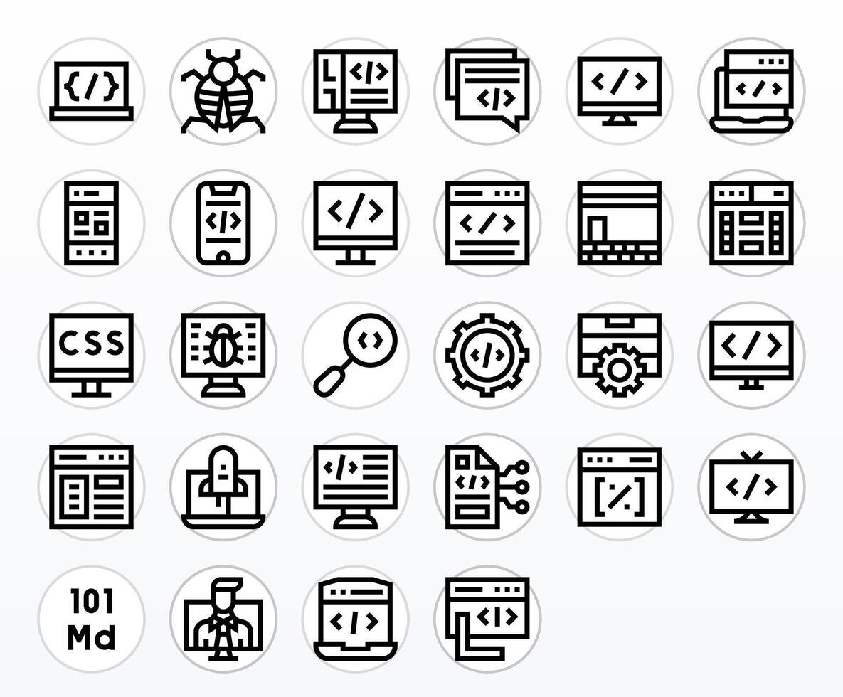 Coding Icon Arsenal with 28 256x256 Bold Line Pixel Aligned designs vector