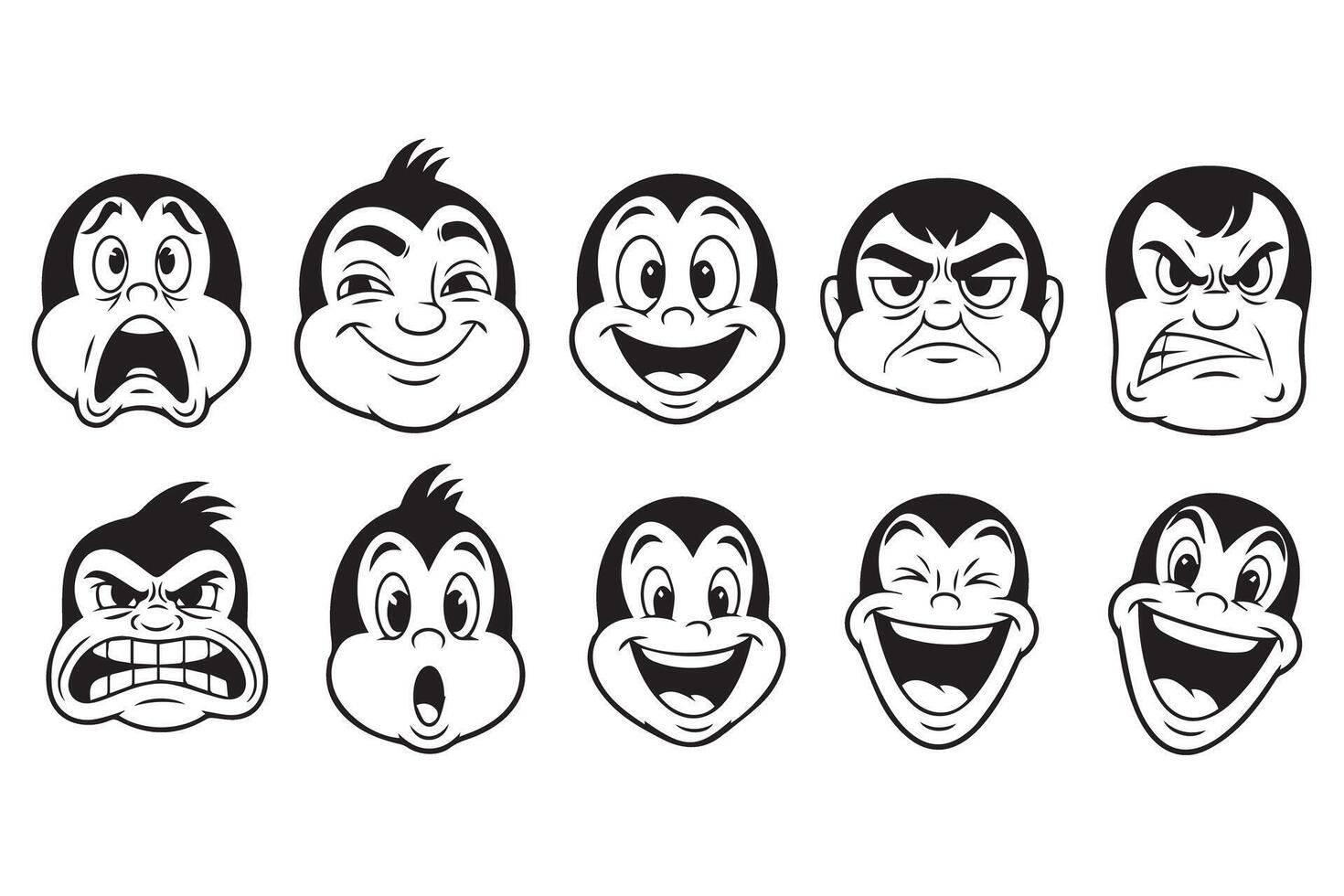 Compilation of cartoon faces displaying a wide range of exaggerated emotions and expressions, isolated on transparent background vector