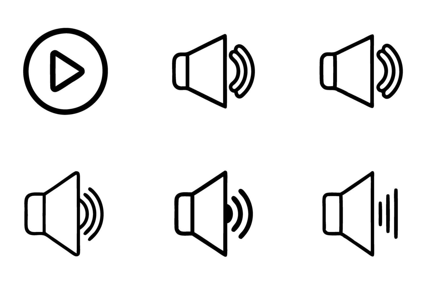 Line Art Icon set with speaker, volume, and play pause audio controls in design Free Vector