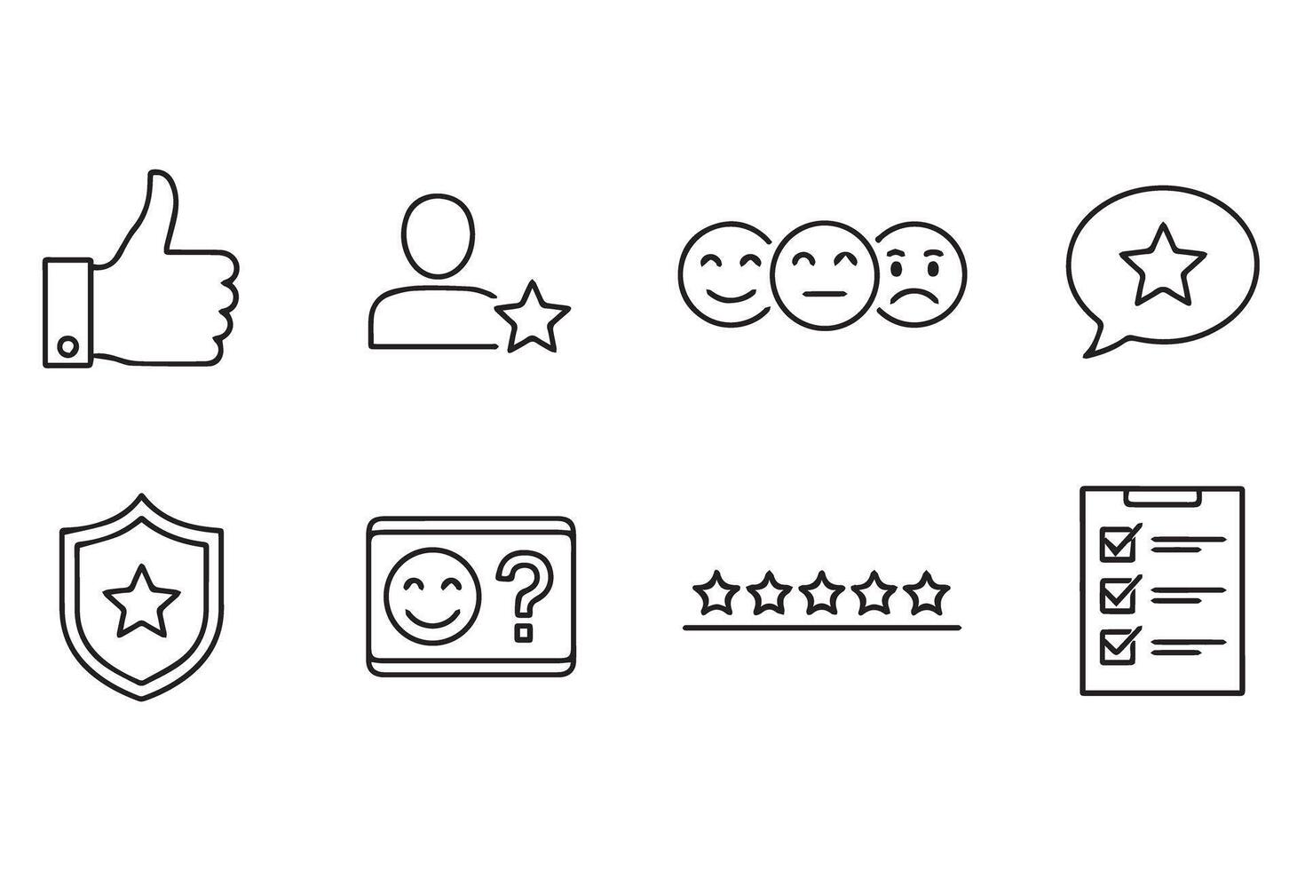 Collection of icons representing customer feedback, ratings, and user satisfaction, isolated on transparent background vector