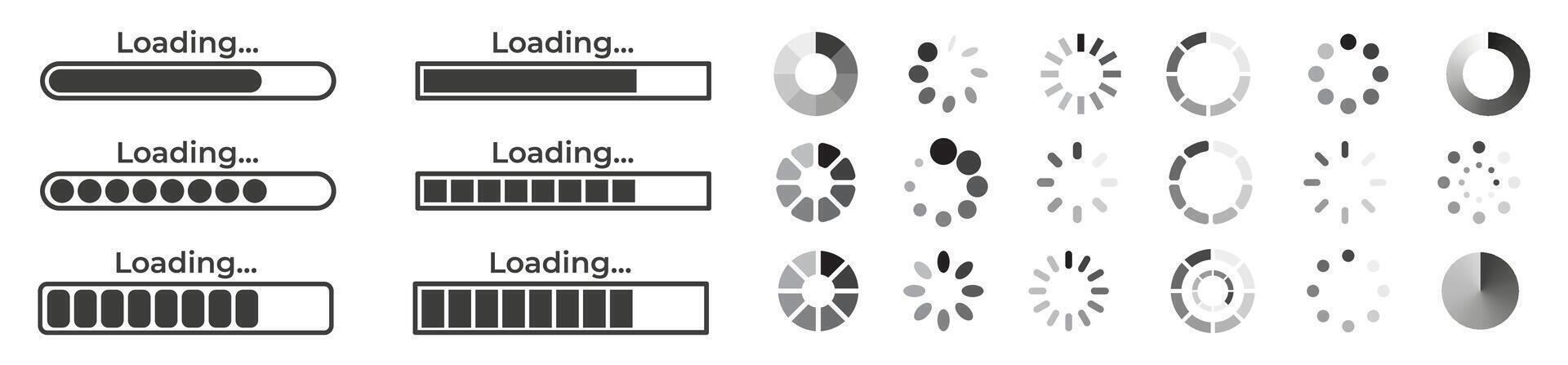 Set of loading icons. Loading bar icon collection. Download progress. Pro Vector