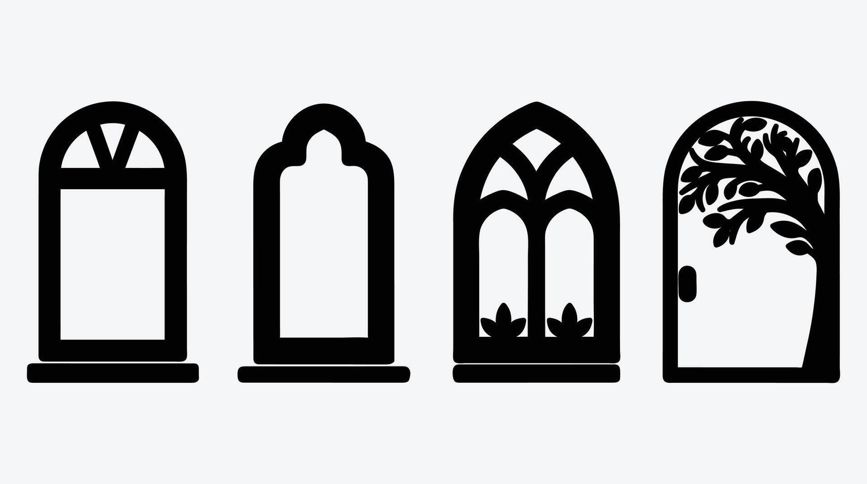 Set of four different window styles in minimalist format Pro Vector
