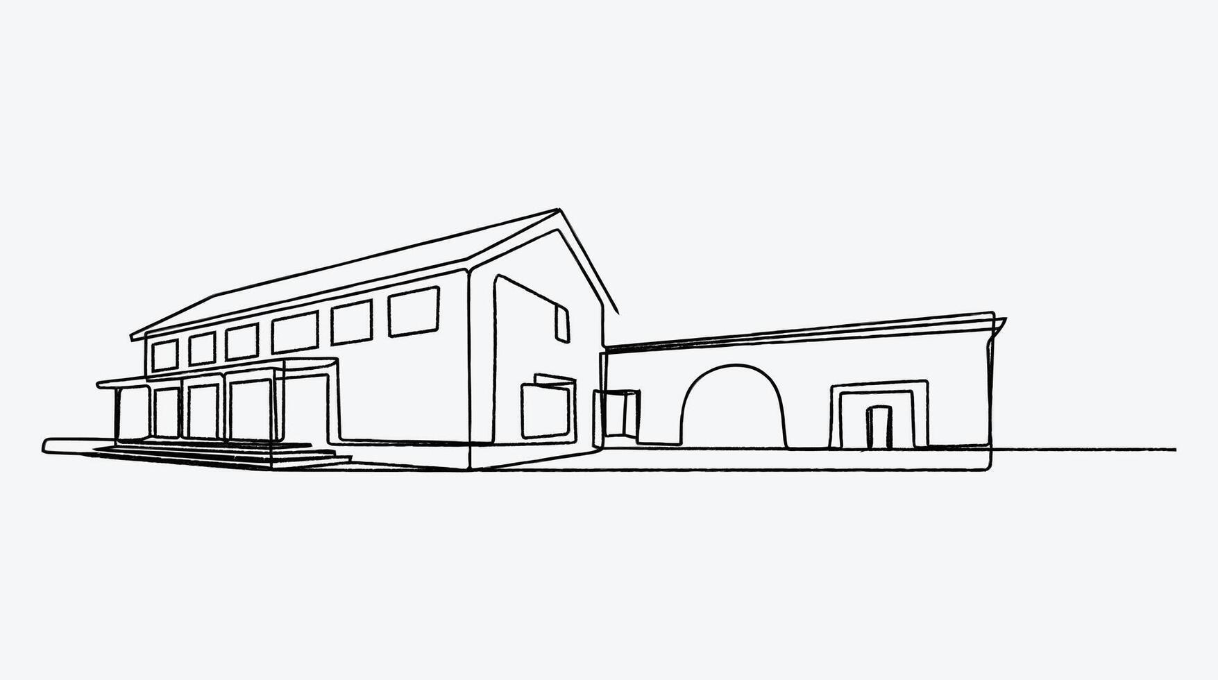Minimalist single line drawing of a house and architectural structure Pro Vector
