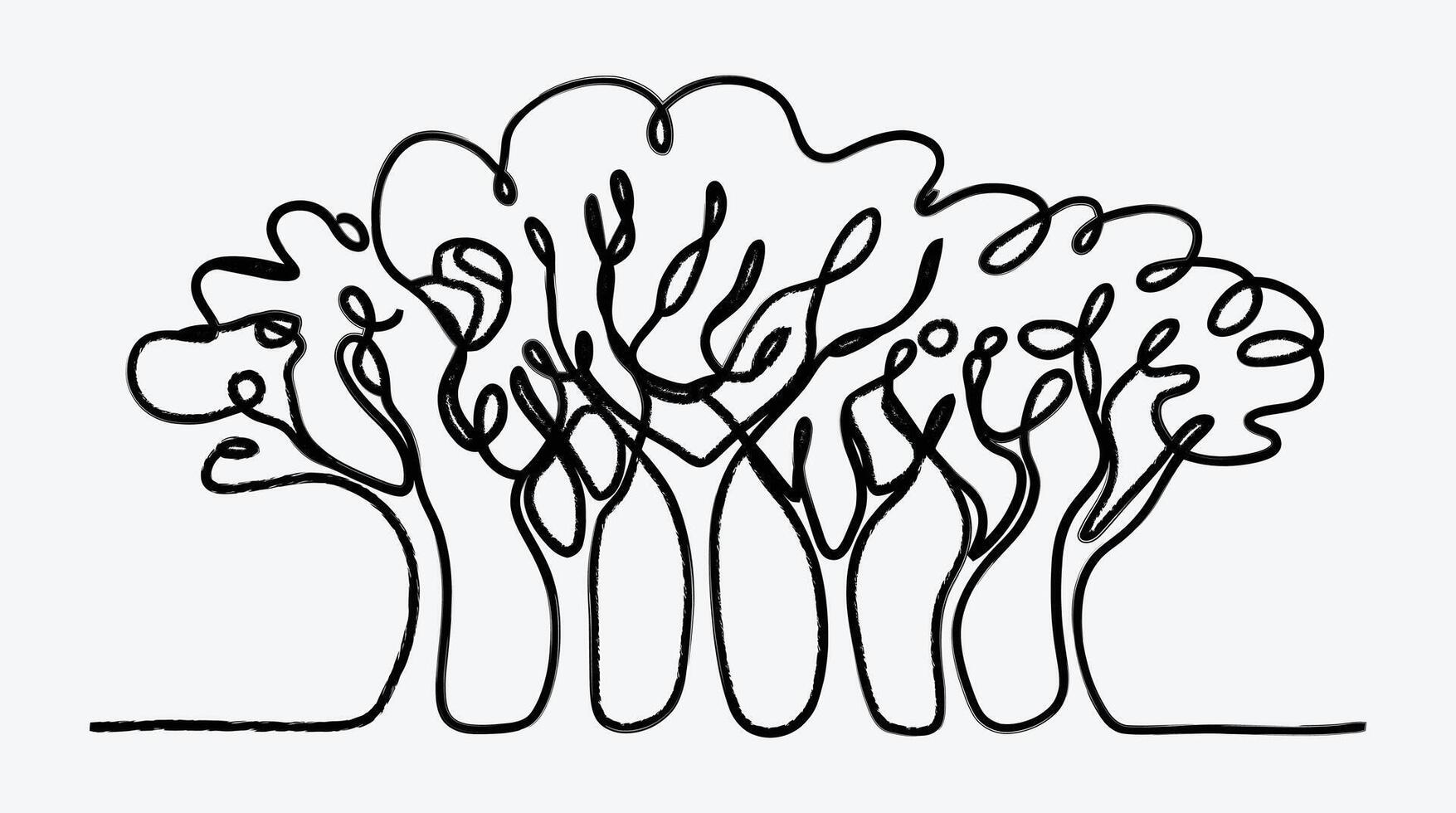 Continuous Line Drawing of Trees Forest Minimalist Design Isolated on White Pro Vector