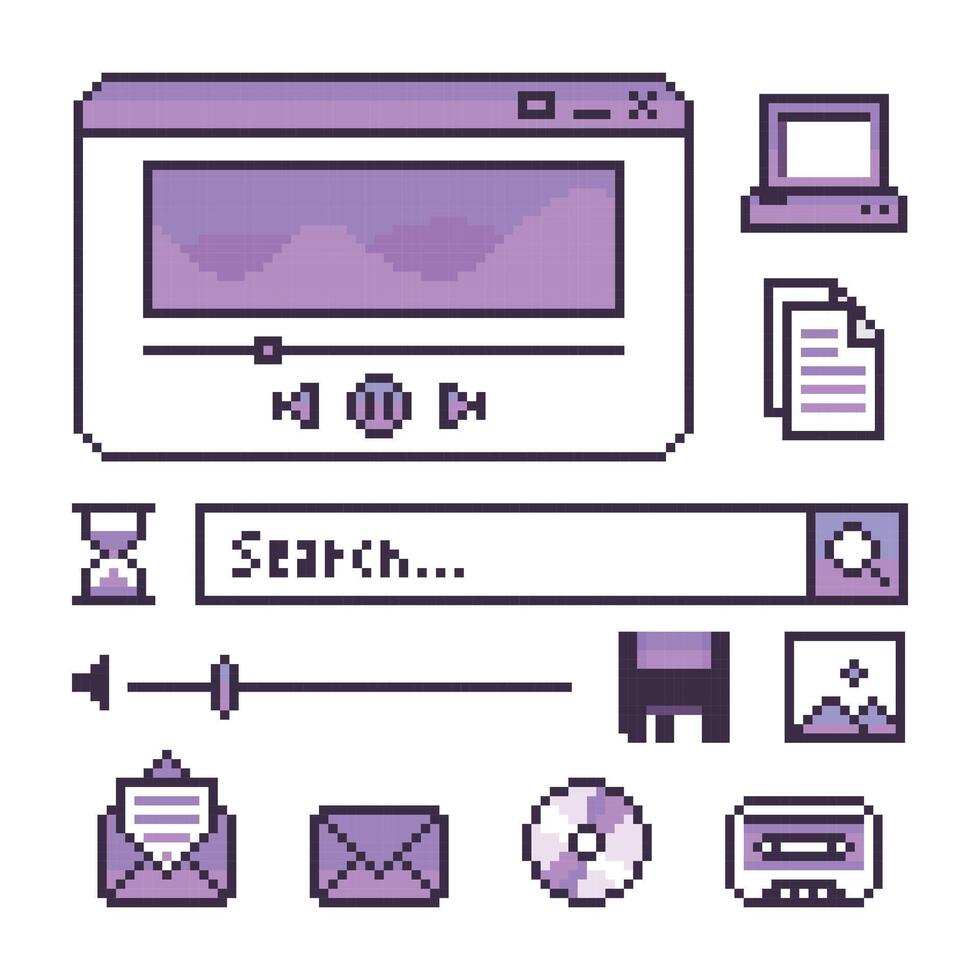 Purple Pixel Art Vaporwave Icons Retro Y2K Computer Elements for Digital Design Pro Vector