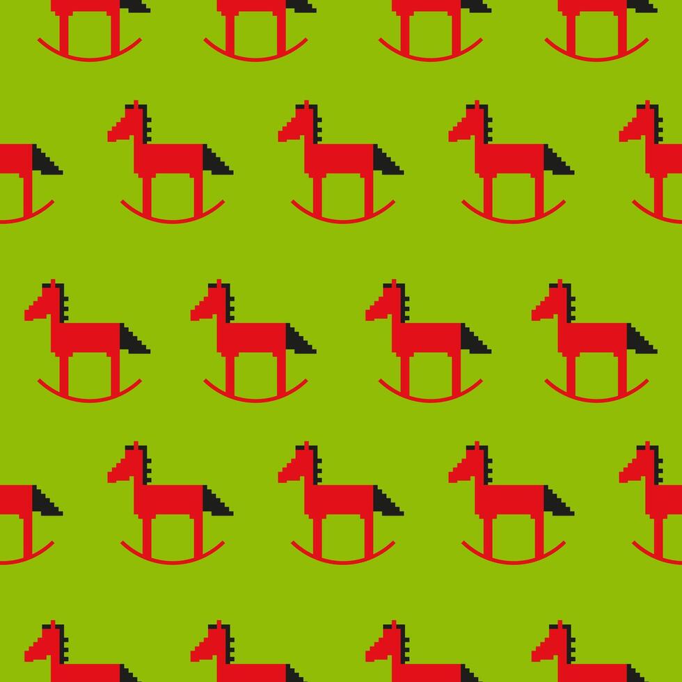 Seamless pattern with red horses. Year of the red fire horse. Pixel art patterned ideal for wrapping paper, notebook cover, fabric, print. Pro Vector