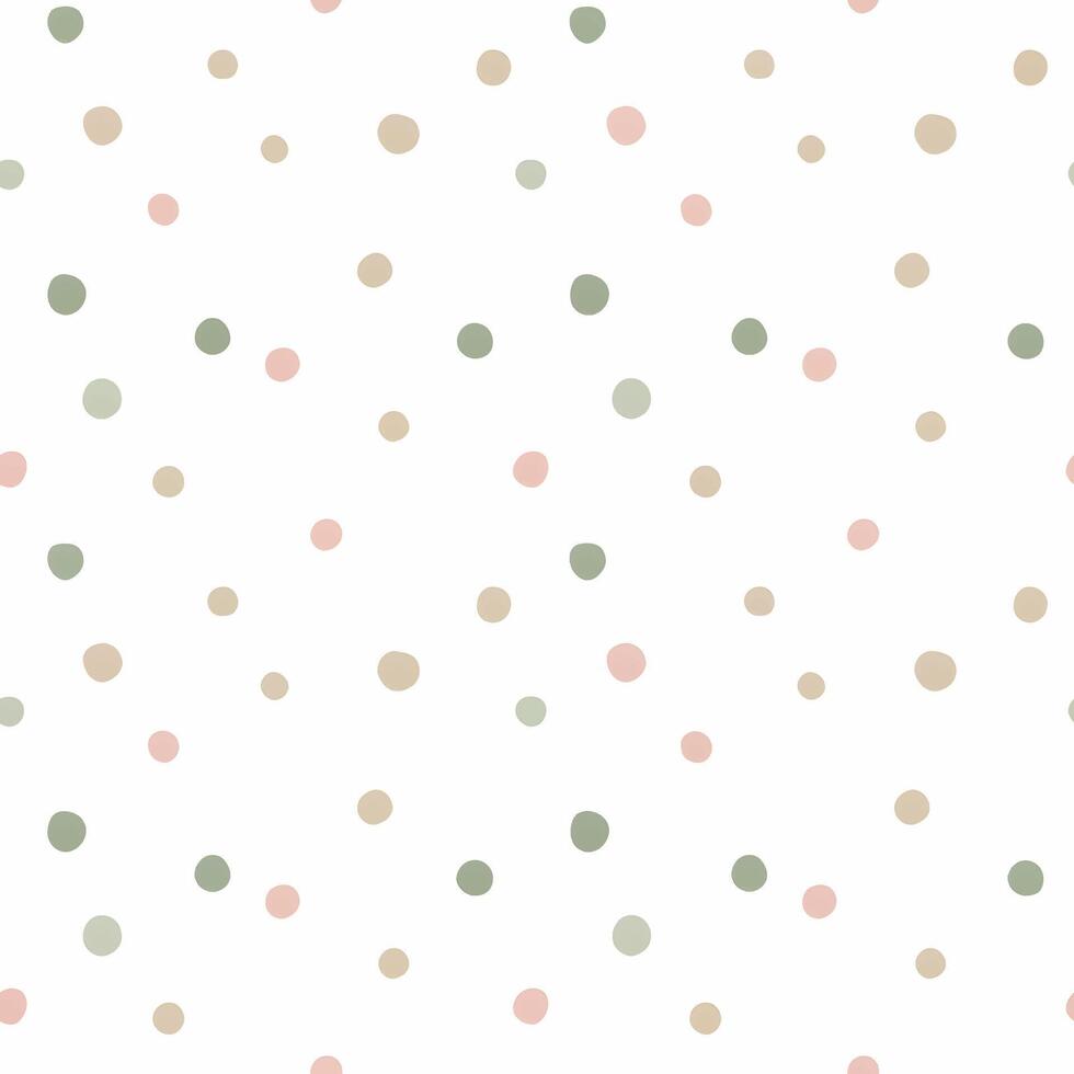 Playful seamless tiled background pattern featuring soft pink, green, and beige polka dots for a delicate and modern design Pro Vector