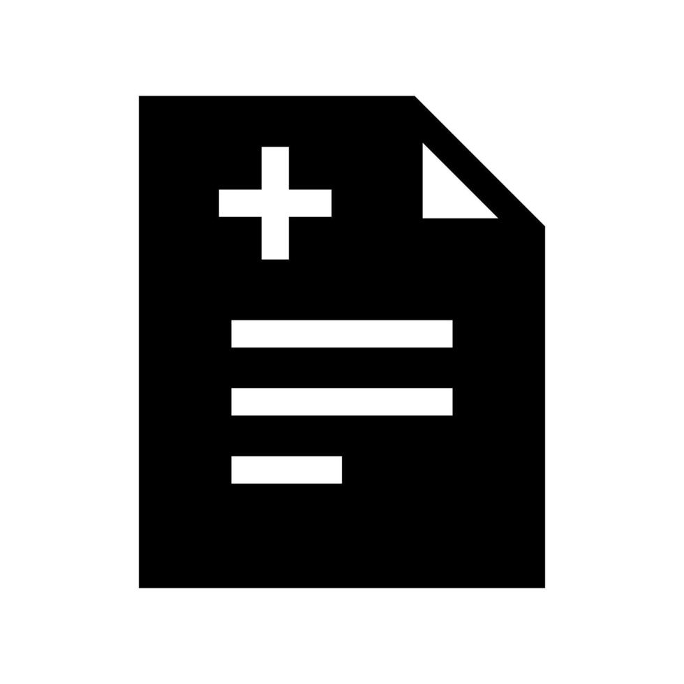 A simple filled icon of a chart with a cross, representing a medical document or record. vector