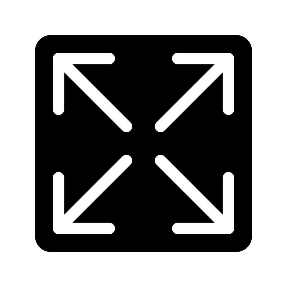 A solid-style icon with four outward-pointing arrows, symbolizing full screen view. vector