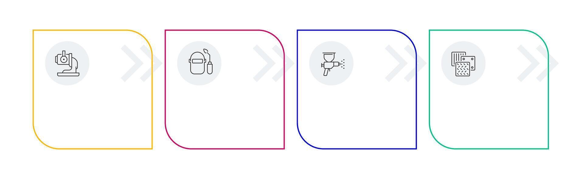 Metal product manufacturing infographic template. Powder coating. Data visualization with 4 steps. Process design. Editable rectangular options info graphics Pro Vector