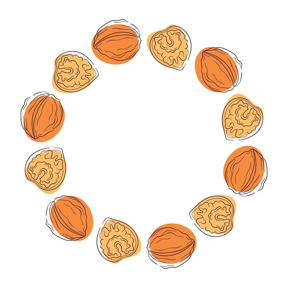 Circular wreath with walnut and kernel on a white background in a flat style. vector